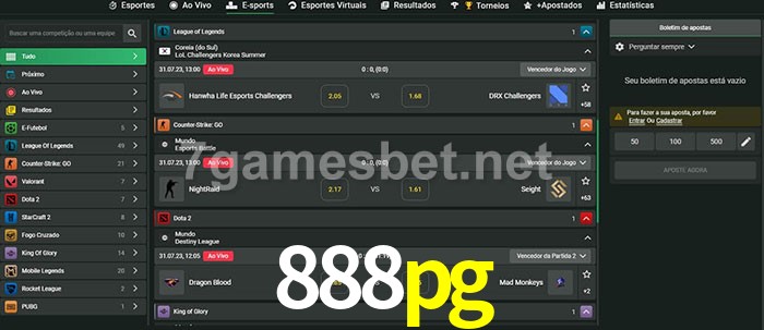 O 888pg oferece uma grande seleção de opções de apostas em e-sports com probabilidades competitivas